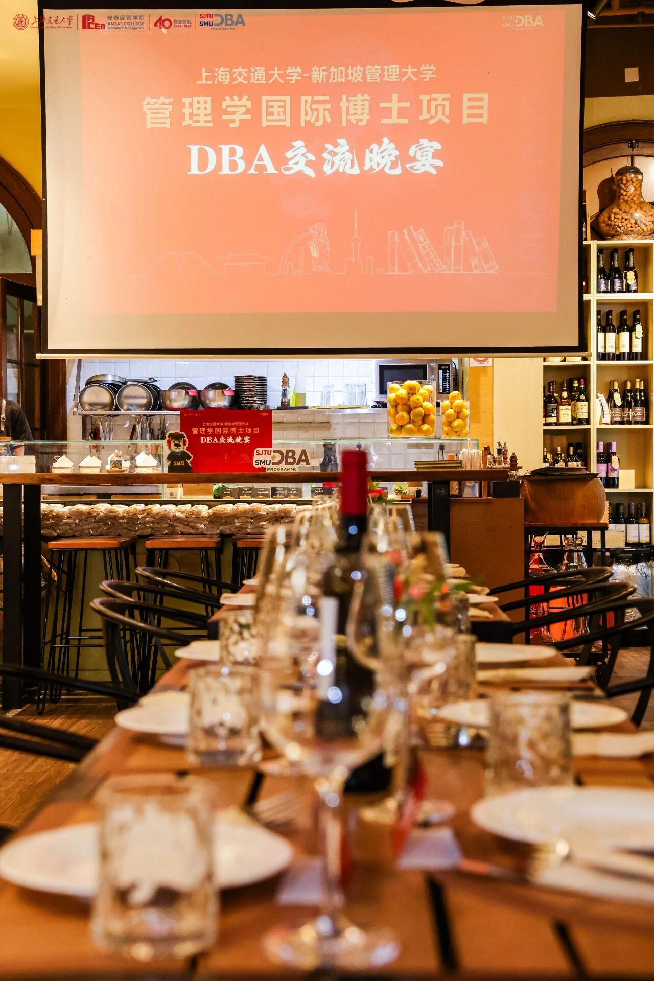 典礼结束的开学晚宴邀请到上海交大安泰经济与管理学院特聘教授万国华教授,作为安泰DBA项目的发起人,万老师对这个项目怀有深厚的感情,也一直在DBA项目担任《全球供应链管理》的课程教授和导师,他非常风趣的说读好DBA的秘诀是“粘”住导师,要不停的跟导师沟通,完成导师布置的任务。
