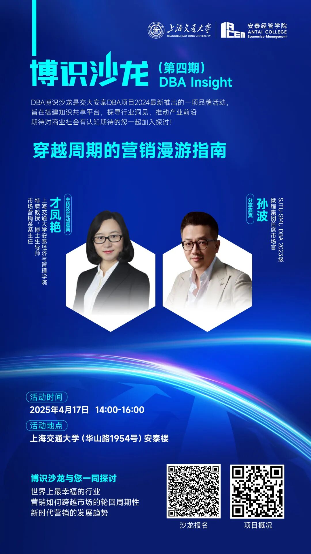 作为中国最优秀的商学院之一,上海交通大学安泰经济与管理学院一向追求学术与商业的完美结合。我们关注到随着中国经济持续增长,对高素质经营人才有着越来越强烈的需求。通过联合世界一流学术力量,我们开设管理学国际博士(DBA)项目,致力于培养引领中国未来的商界领袖,他们将是兼具卓越领导力和科研精神的高层次人才。